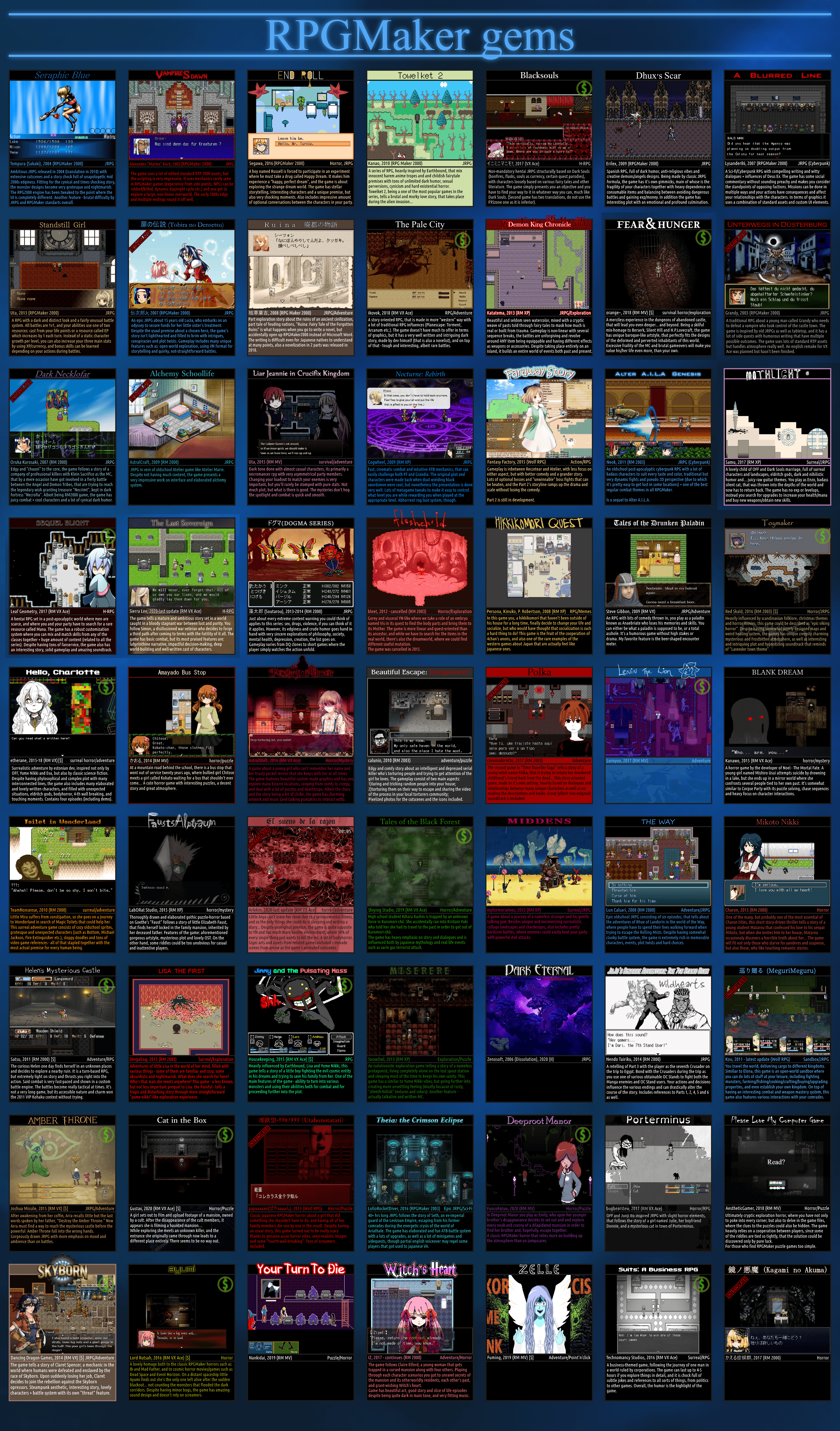 I honestly knew great part of this games, I really only finished Witch's Heart (very good), Blank Dream, Toilet in Wonderland (great absurd game) and Pocket Mirror (the original version, I didn't care much about). I played others, but never got close to completion of thoses.