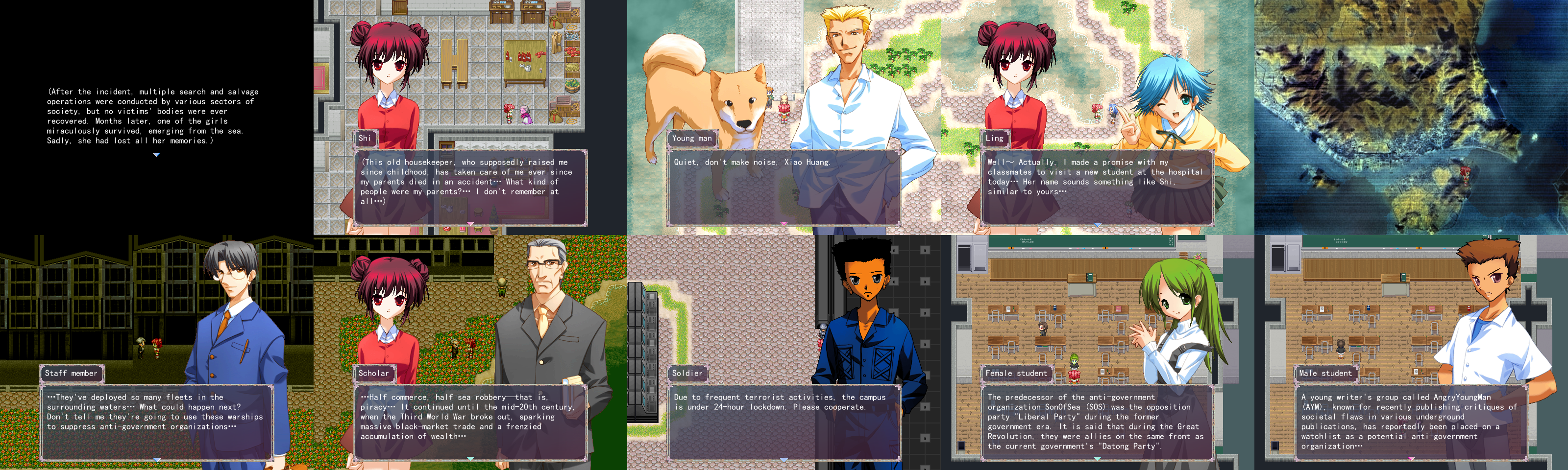 You play as a girl Shi/Xi/夕 who goes to visit a hospitalized schoolmate in the place of your friend who turns out to be strangely similar to you. Shortly afterward, monsters begin appearing and attacking people.